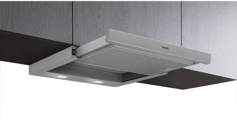 Ancho 60 cm Acero Clase de eficiencia energética B (dentro del rango A+++ a D). 3 potencias de extracción Filtros de aluminio lavables en lavavajillas Capacidad máxima de extracción según UNE/EN 61591: 389 m³/h Potencia sonora en nivel 3: 67 dB(A) Iluminación LED Posibilidad de instalación en salida de aire al exterior o en recirculación. Medidas Medidas aparato (alto x ancho x fondo): 203 x 598 x 290 mm Medidas encastre (alto x ancho x fondo): 162 x 526 x 290 mm