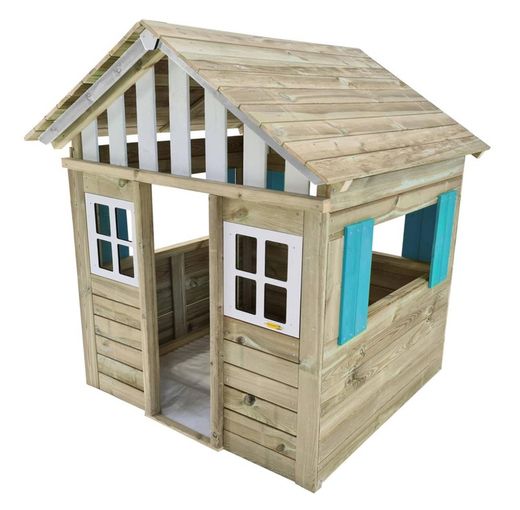 La casita de madera MASGAMES LOLLIPOP XL HORECA AZUL es una casita infantil homologada para uso público, enfocada al sector HoReCa y escuelas. Cuenta con una estructura de madera muy resistente y tratada para la intemperie, ventanas frontales de polietileno de alta densidad en color blanco, y ventanas laterales y trasera abiertas.