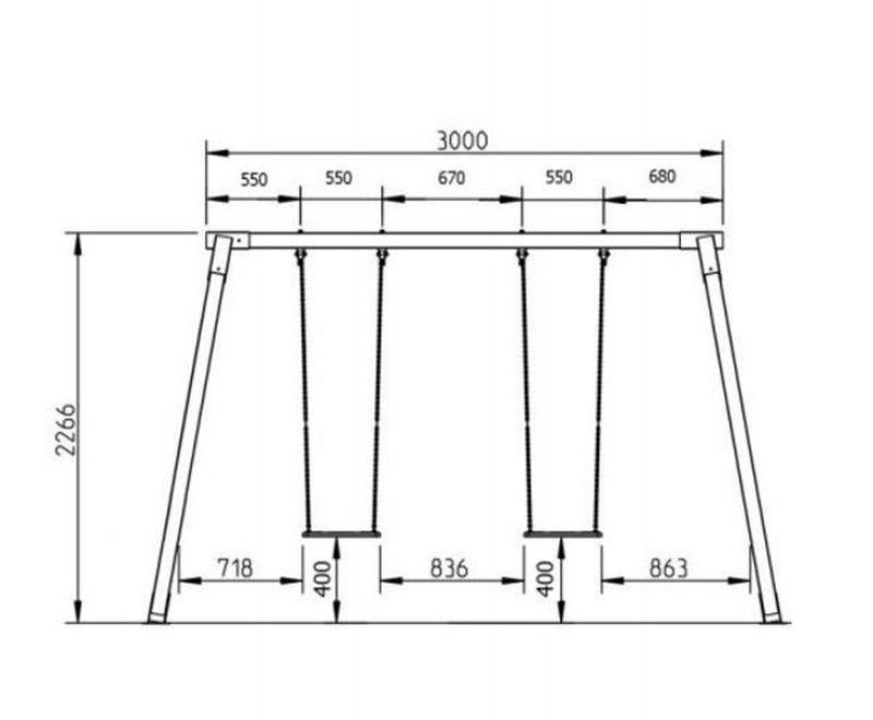 Es un columpio enfocado al canal HORECA, lo que lo hace ideal tanto para espacios privados como patios o jardines como para hoteles, restaurantes, campings u otros espacios públicos. Los asientos también están, obviamente, homologados para uso público y son tan resistentes que en ellos podrán columpiarse niños y adultos. Los asientos están fabricado de caucho, mientras que unas cadenas metálicas los unen a la estructura del columpio.