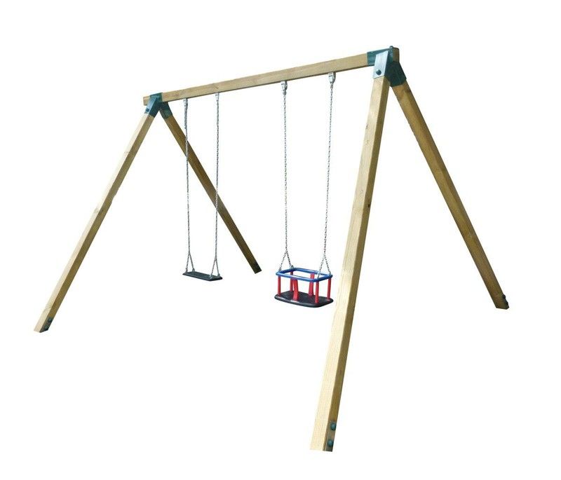 Los columpios de madera cuadrada son aún más estables que los columpios de madera redonda. Esto sucede porque los córneres metálicos de los columpios de madera cuadrada, por su naturaleza y montaje, minimizan el posible balanceo horizontal que sí puede existir con la madera redonda por la misma razón.