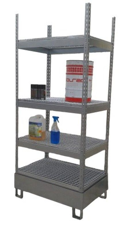 Rayonnage galvanisé avec grilles, particulièrement adapté au stockage de produits dangereux. Résistant à l'humidité. Capacité de charge par tablette de 65 kg. Seau de rétention galvanisé 900 x 600 x 2100 mm de 75 litres. FOURNI DÉMONTÉ Également appelé: Armoire avec étagères pour bidons avec seau collecteur. Référence 11020 Dimensions (mm) longueur x largeur x hauteur 900 x 600 x 2100 Caractéristiques 65 kg par tablette Finition galvanisée