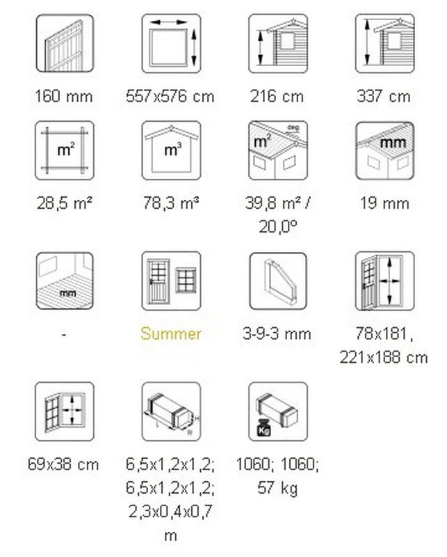SPÉCIFICATIONS DU MODÈLE Dimensions du mur: 557x576 cm Volume: 78,3 m3 Type de porte / fenêtre: Été Porte / fenêtre en verre: Double vitrage, 3-9-3 mm Fenêtre, dimensions du passage: 69x38 cm Porte, dimensions du passage: 78x181 , 221x188 cm Appui de porte: bois franc Panneaux de toit: 19 mm Surface de toit: 39,8 m2 Pente de toit: 20,0˚ Surface de base: 32,1 m2 Poids: 2200 kg NOUS VOUS CONSEILLONS EN CAS DE CHOIX SANS TRAITEMENT: -Peinture vernis à l'eau ou Lasur Paint (qui pénètre profondément dans le bois, laissant le bois respirer et ne formant pas de film). QUEL EST LE TRAITEMENT? Comme nous avons nos propres bains de traitement pour le traitement par trempage brun, gris et transparent, les cabines et autres articles plus grands peuvent être commandés traités avec le liquide de traitement soluble dans l'eau Axil 3000 P de Sarpap & Cecil Industries, garantissant traitement dans les classes 1-3. En plus des composants qui protègent le bois contre les dommages biologiques et la protection contre les rayons UV, cet apprêt peut contenir trois pigments différents. Le traitement par trempage brun et gris peut rehausser la couleur de votre maison, mais le trempage transparent fonctionne pour l'étape de préparation avant la peinture. Le pigment s'estompe progressivement avec le temps, mais cela n'a aucun effet négatif sur les performances du traitement.