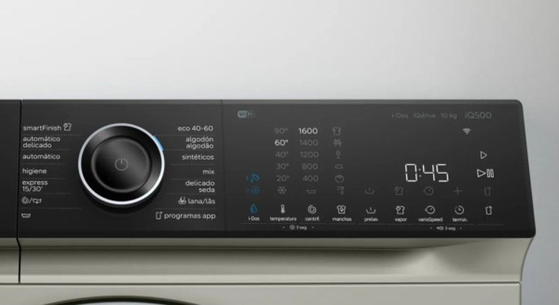 Lavadora inteligente, un 20 % más eficiente que el etiquetado A, con programas antiManchas, smartFinish y dosificación inteligente i-Dos con escáner de detergente a través de Home Connect. Eficiencia energética Clase A -20 %: Hasta un 20 % menos de consumo de energía que la Clase A Nuestras lavadoras con capacidad de 10 kg pueden incluso con las coladas más abundantes. i-Dos con lector de detergente: Dosifica automáticamente el jabón con la máxima precisión, lavado tras lavado. smartFinish: Alisa las arrugas para ahorrar tiempo de planchado. Accede y controla tu lavadora, estés donde estés, con la aplicación Home Connect (para Android e iOS).